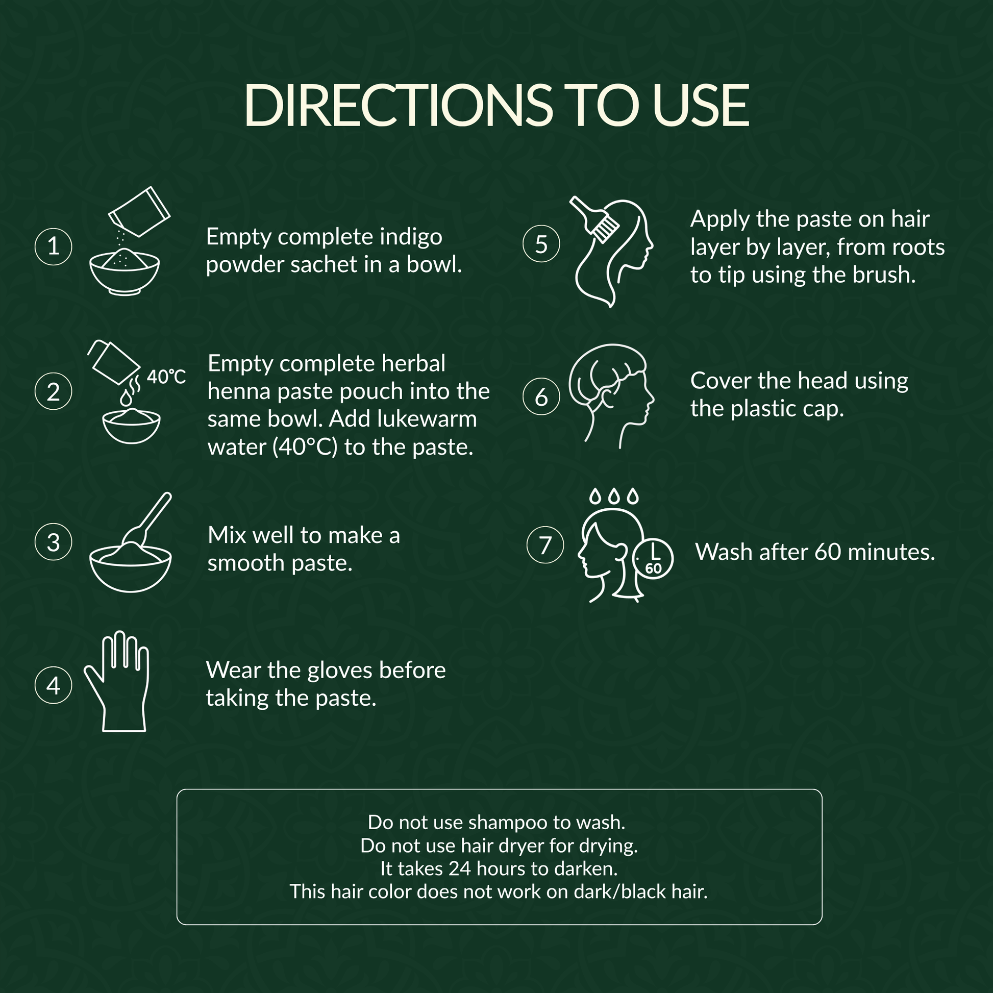 - Step 6: Wash after 60 mins.